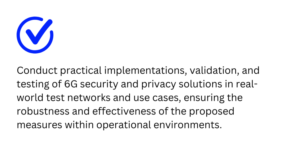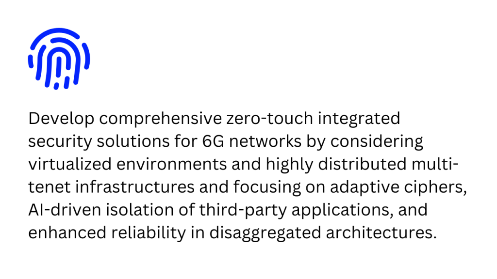 Develop robust, resilient, secure and privacy-preserving network solutions for 6G networks.